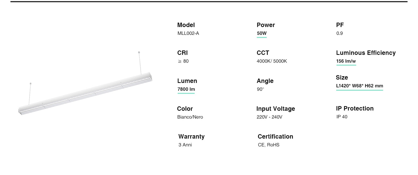 La Canalización de 5 Hilos L0114N ha sido diseñada específicamente para complementar y mejorar el rendimiento de su Lámpara Lineal LED MLL002-A. Al elegir este accesorio, asegura una integración perfecta con su sistema de iluminación, lo que resulta en una experiencia de iluminación más eficiente y confiable.