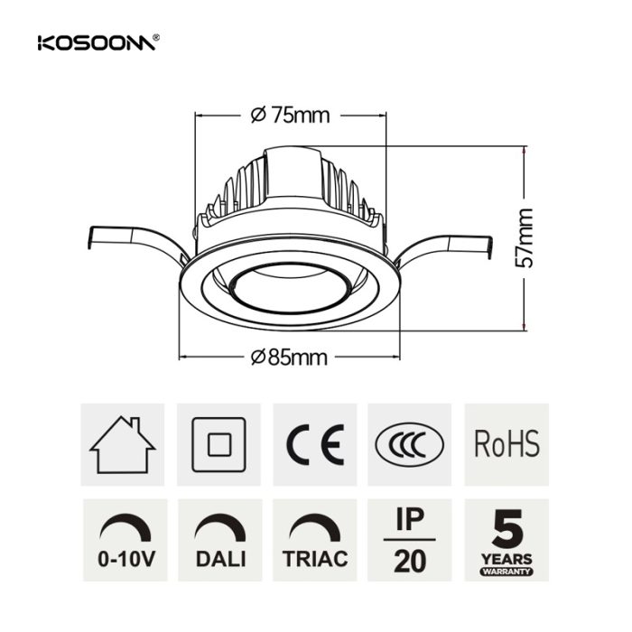 Directo de fábrica personalizado 12W de alta eficiencia Foco LED Downlight900LM Ángulo de haz 120 ° STKRD12-Kosoom