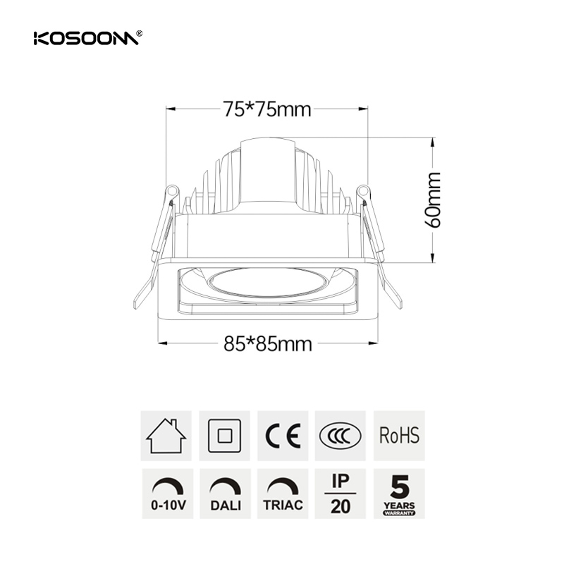 Downlight LED de alta calidad personalizado Iluminación comercial STKS1D12 12W 900LM Ángulo de haz 120°-Kosoom
