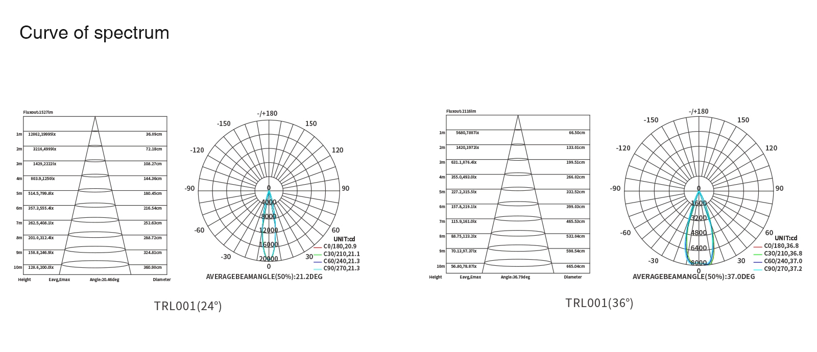 La serie TRL001 Foco de Carril ofrece múltiples opciones de productos personalizables, cada uno con un parámetro de producto único que corresponde a especificaciones y dimensiones específicas. A continuación se detallan las especificaciones técnicas de cada código de producto: